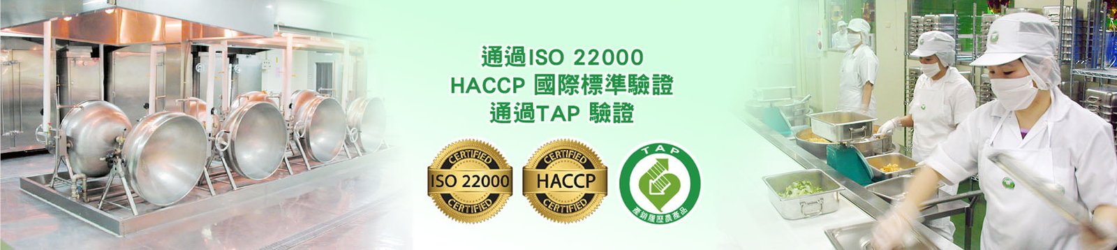 品質就是生命,品質要有保障,客戶才有信心,公司才能持續發展。本公司同時具有 CAS 截切蔬果生產線、有機農產品驗證、農產品產銷履歷驗證,盒餐工廠符合 HACCP 要求, 並通過 ISO 22000 食品安全國際標準驗證。